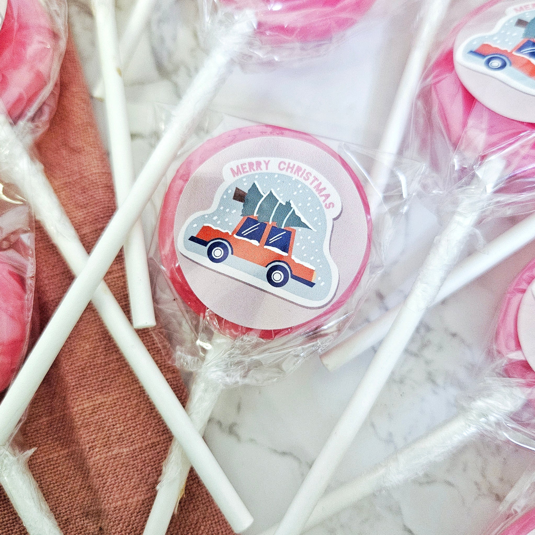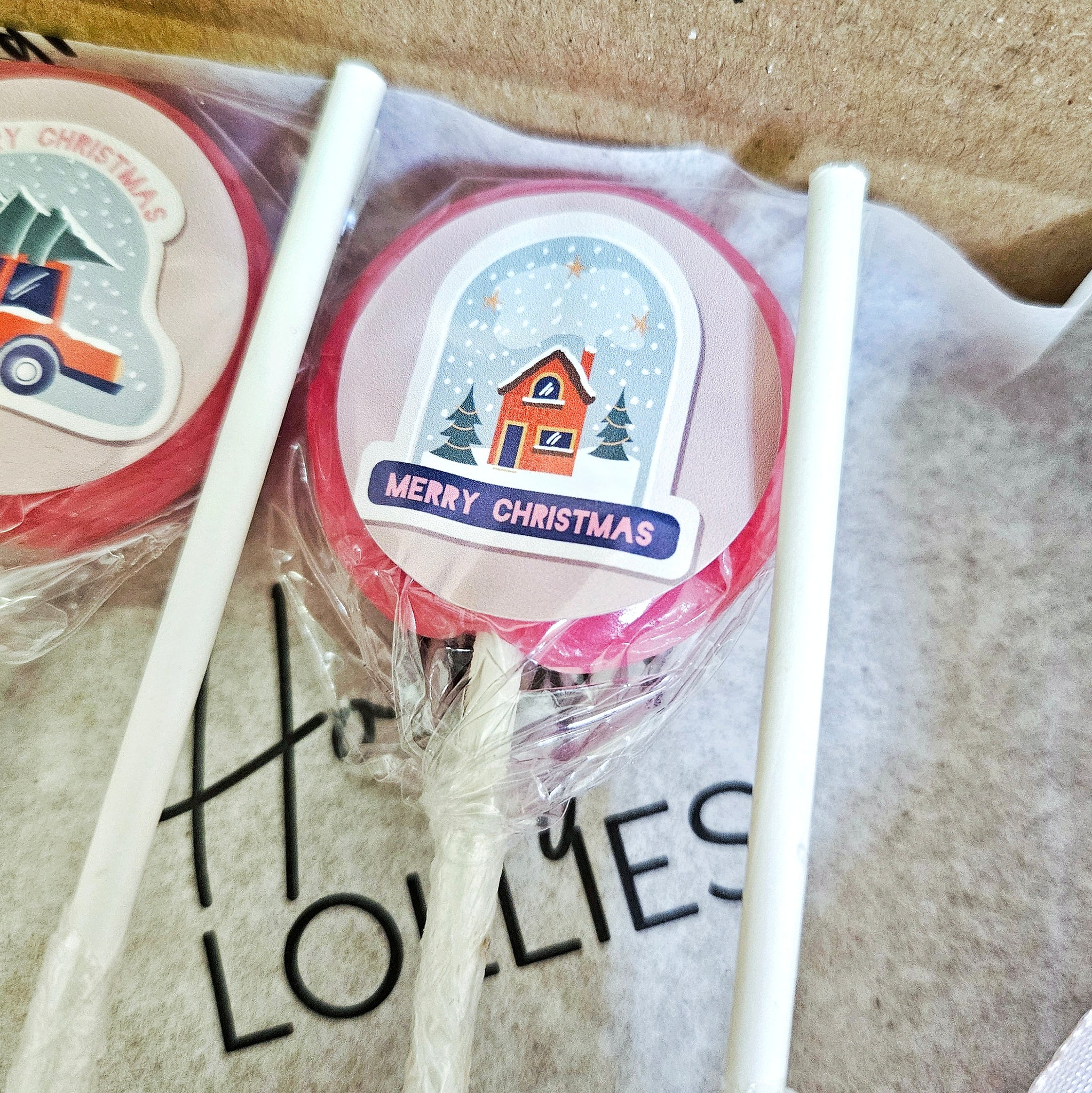 Grab an a absolute bargain for the festive season with this pack of 20 Christmas themed Raspberry Prosecco lollipops, from our sister company Holly's Lollies